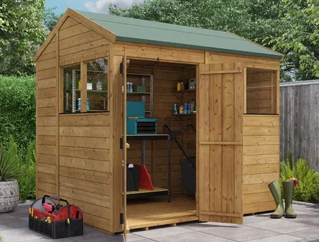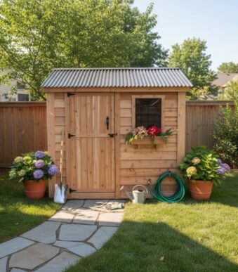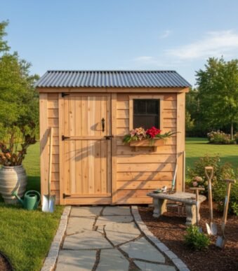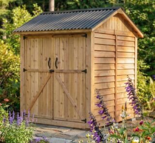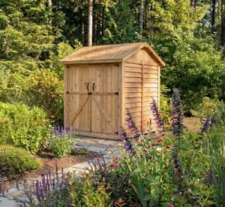 Made from durable, rot-resistant cedar, this 6′ x 6′ backyard garden shed is an outdoor storage solution for large garden