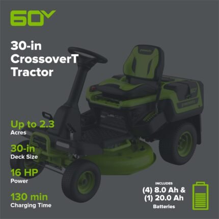 60V 30″ CrossoverT Riding Lawn Tractor with (4) 8.0 Ah Batteries and 600-Watt Charger