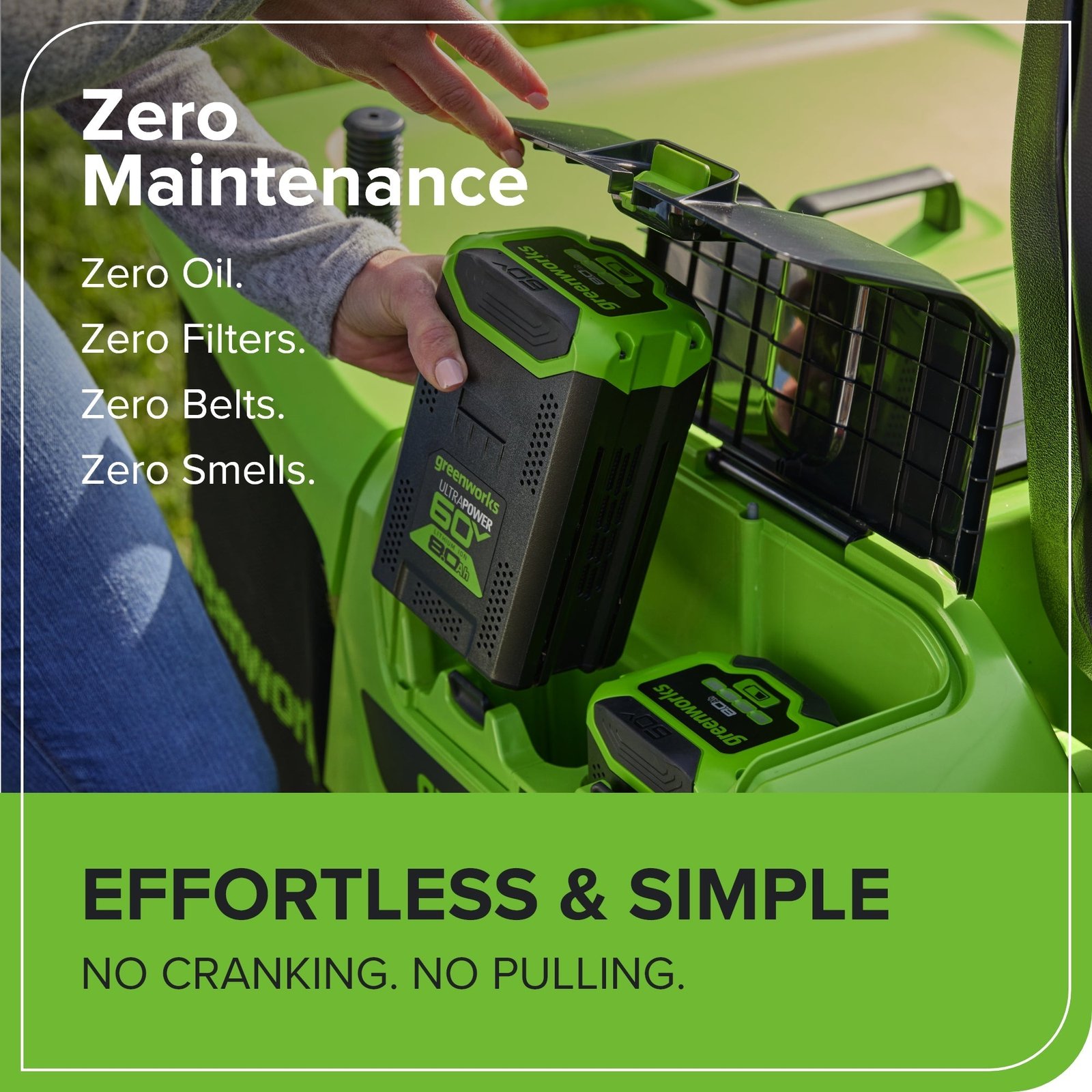 - Power 75+ Tools with any Greenworks 60V Battery