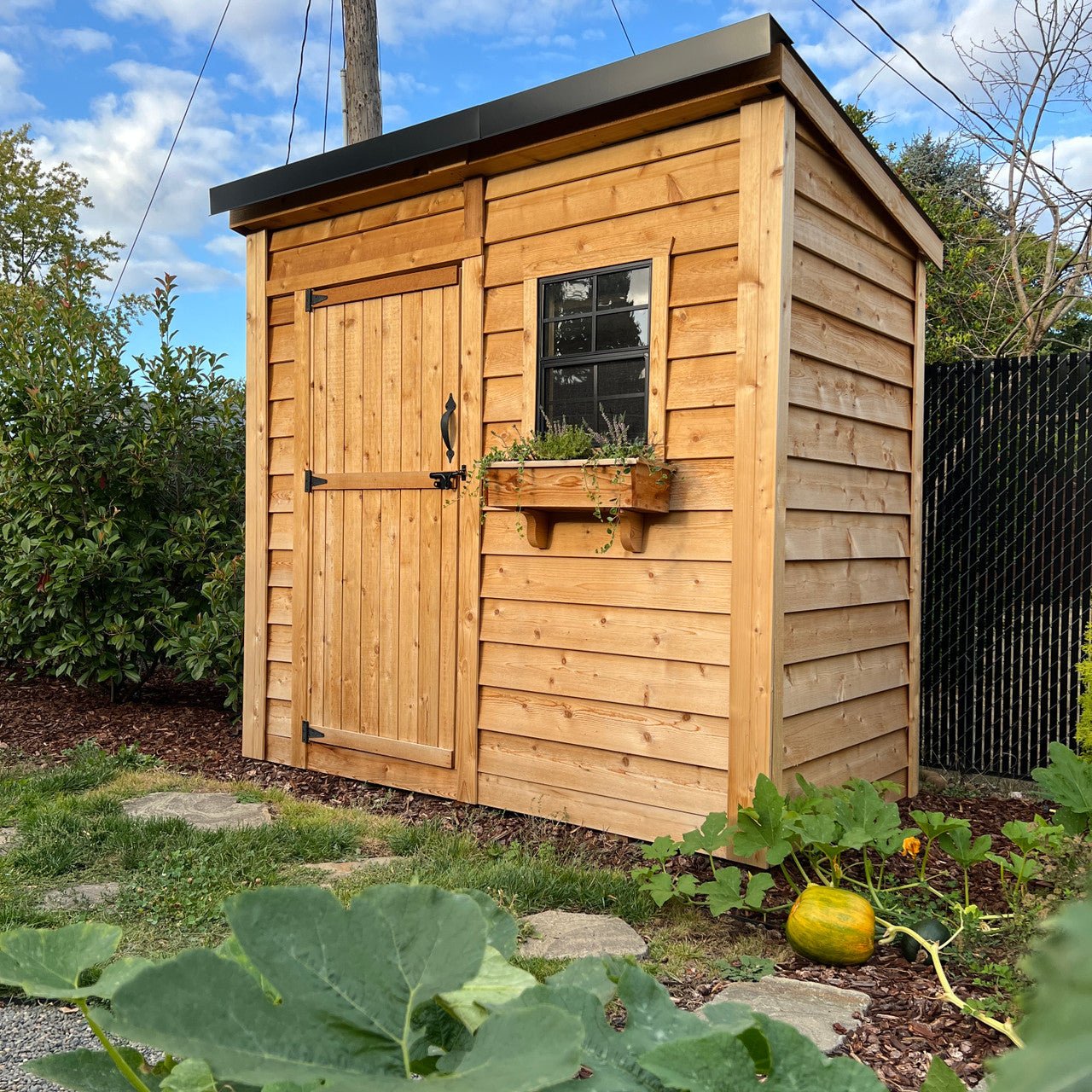 Made from durable, rot-resistant Western red cedar, this lean-to garden shed is a charming and functional outbuilding that looks great next to a house or standing alone in your backyard or garden.