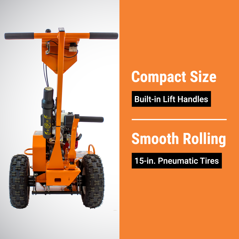 - A ratchet mechanism on the wheels helps prevent the machine from pulling away from the trenching direction