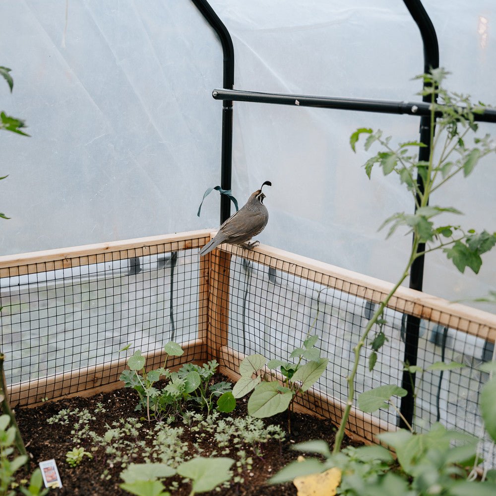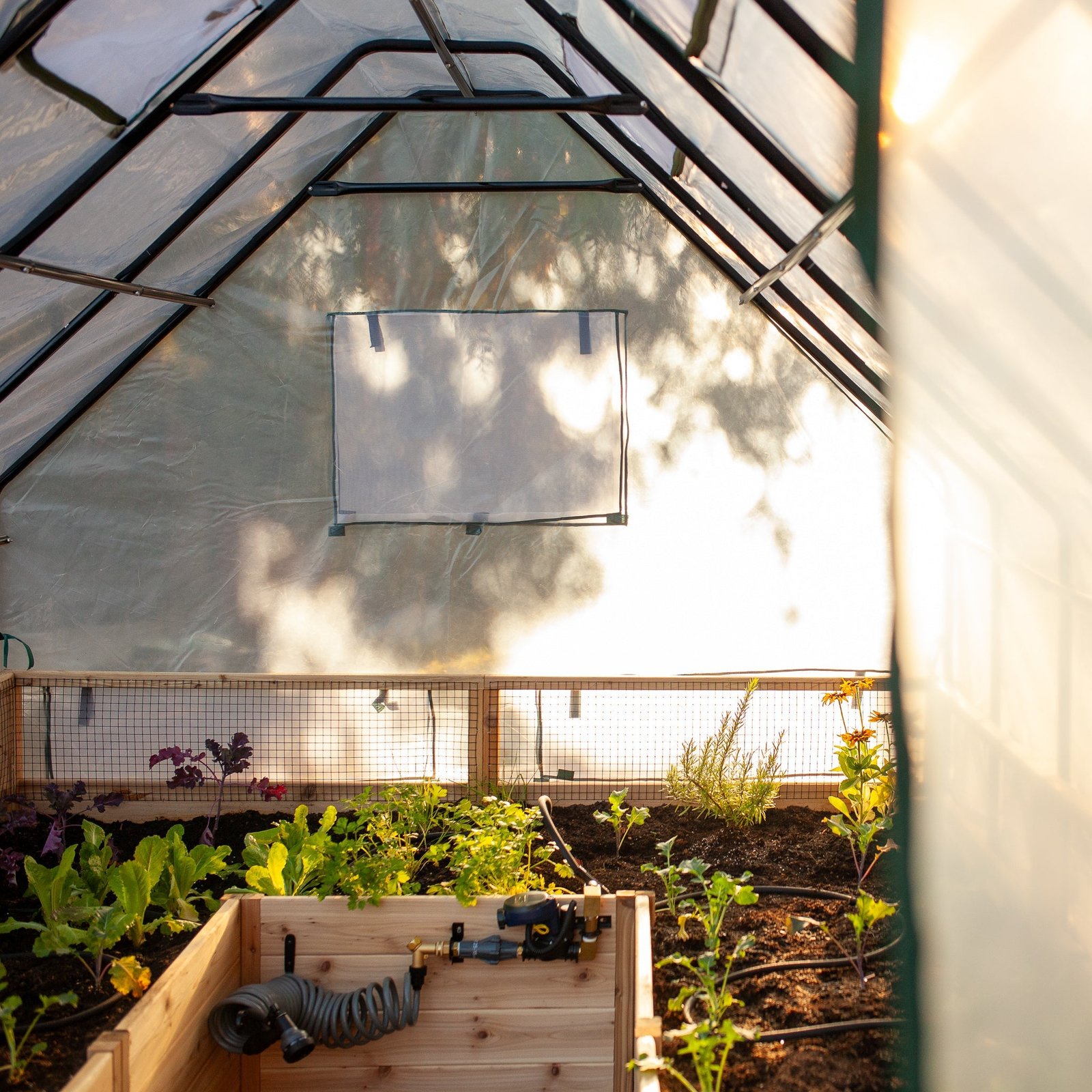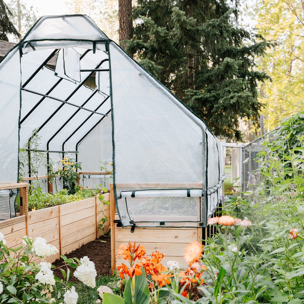 Turn your raised garden bed into a seasonal greenhouse and extend your growing season! This 8′ x 12′ self-contained, wrap-around garden features a removable greenhouse cover, plus a gate, fencing, and a large raised bed to grow fresh vegetables.