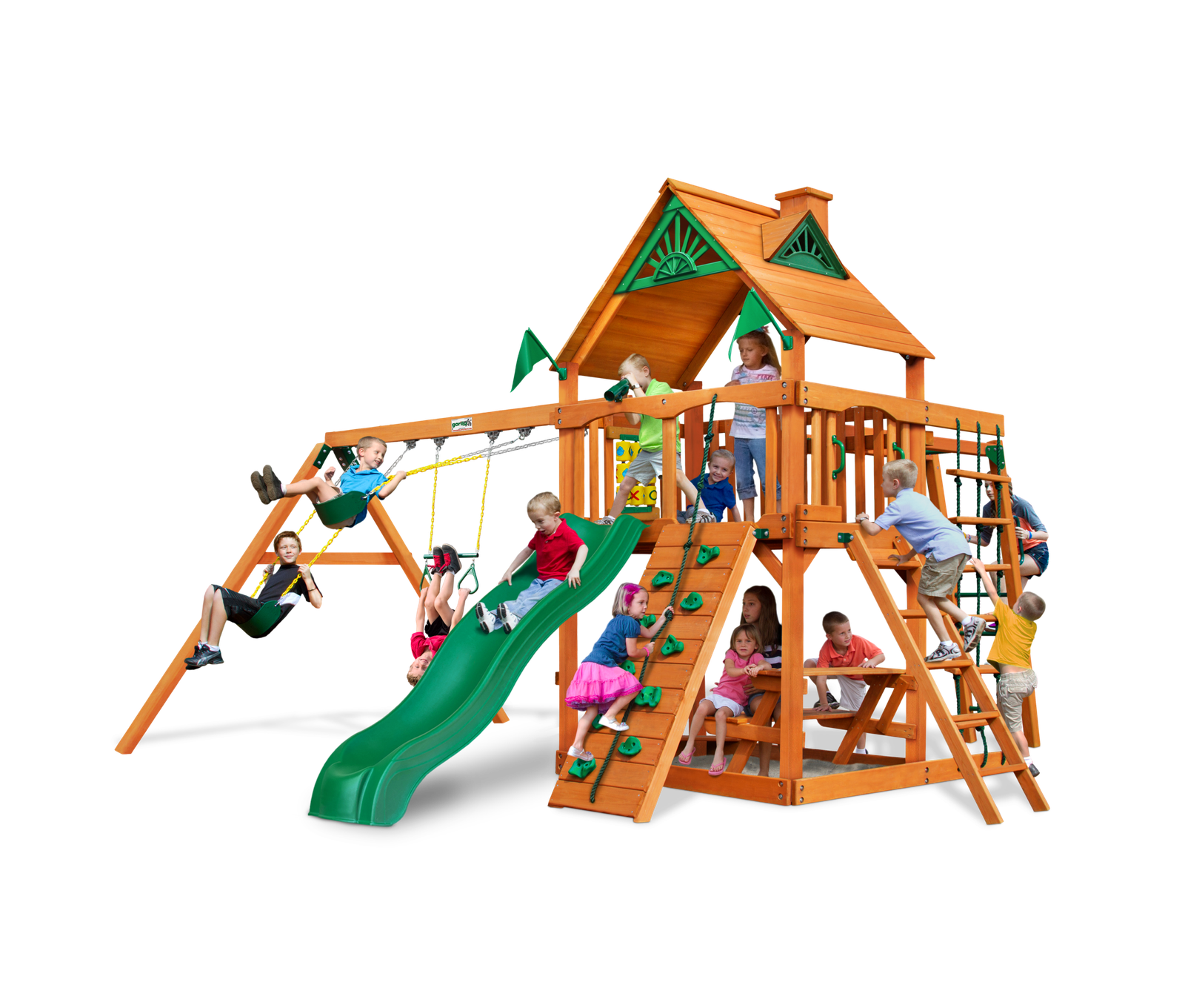 When you add the Gorilla Playsets Chateau Swing Set to your home, the kids are sure to enjoy every hour