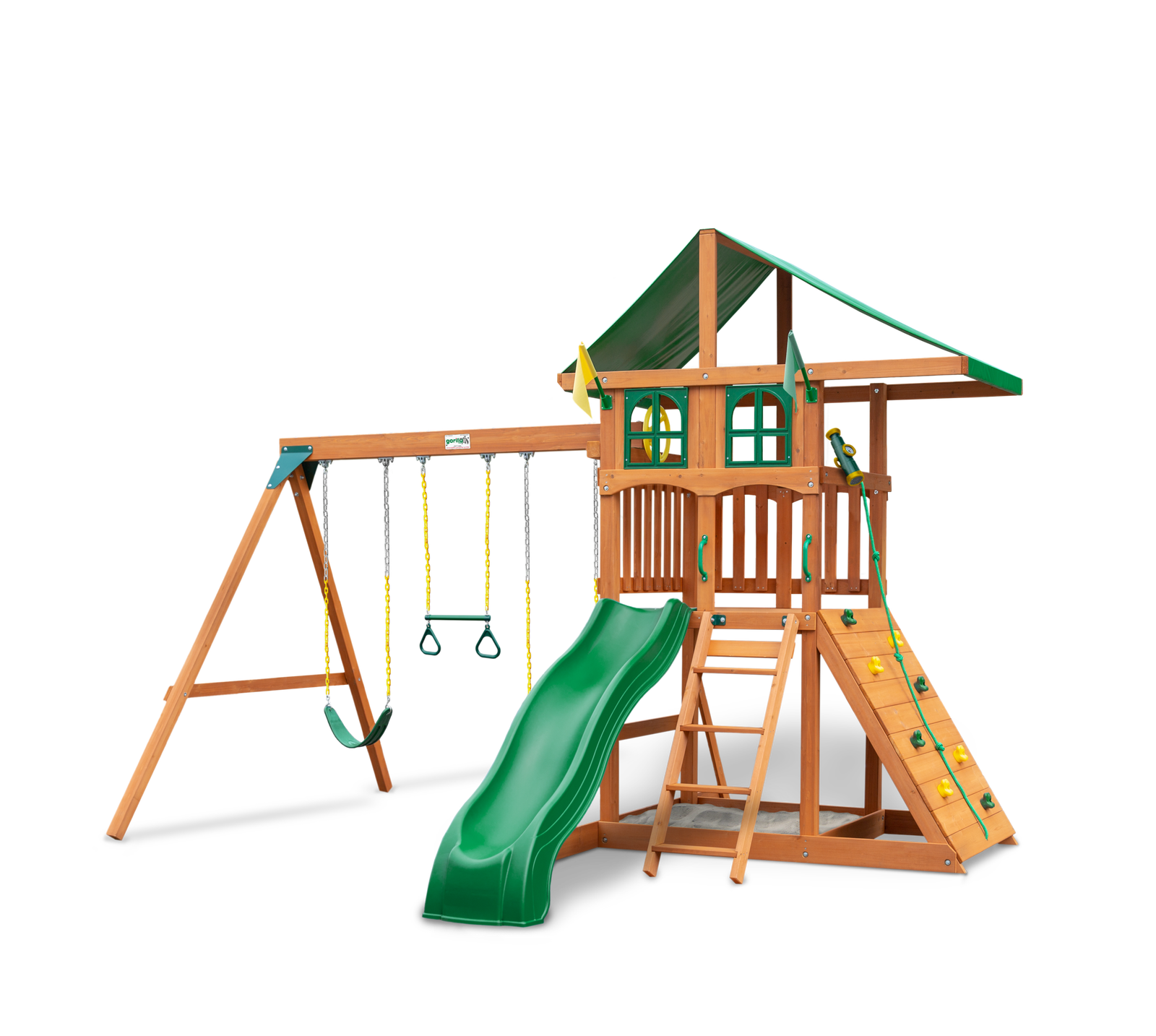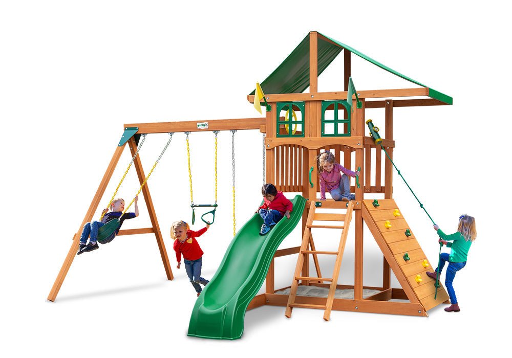 When you add the Gorilla Playsets Chateau Swing Set to your home, the kids are sure to enjoy every hour