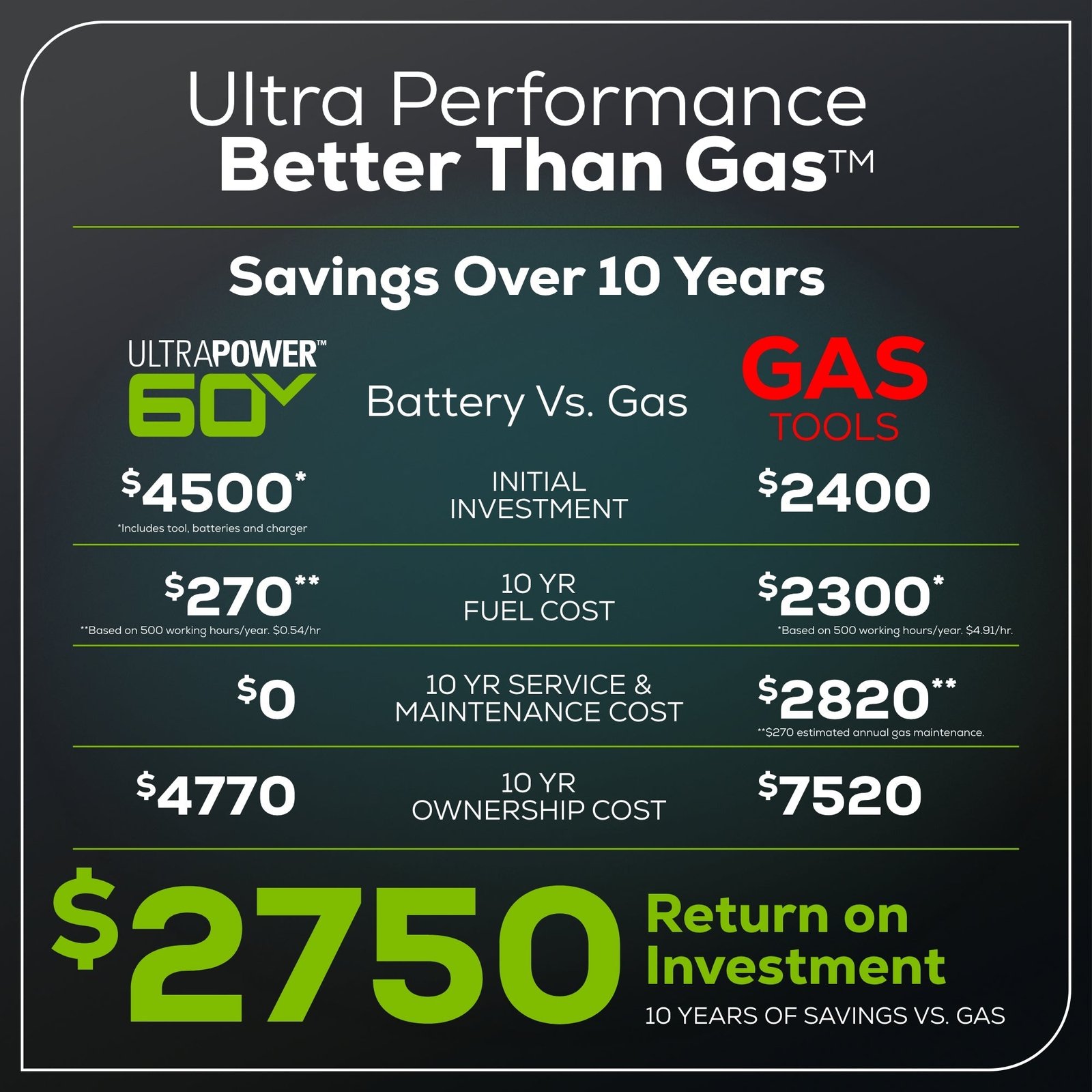 - Power 75+ Tools with any Greenworks 60V Battery