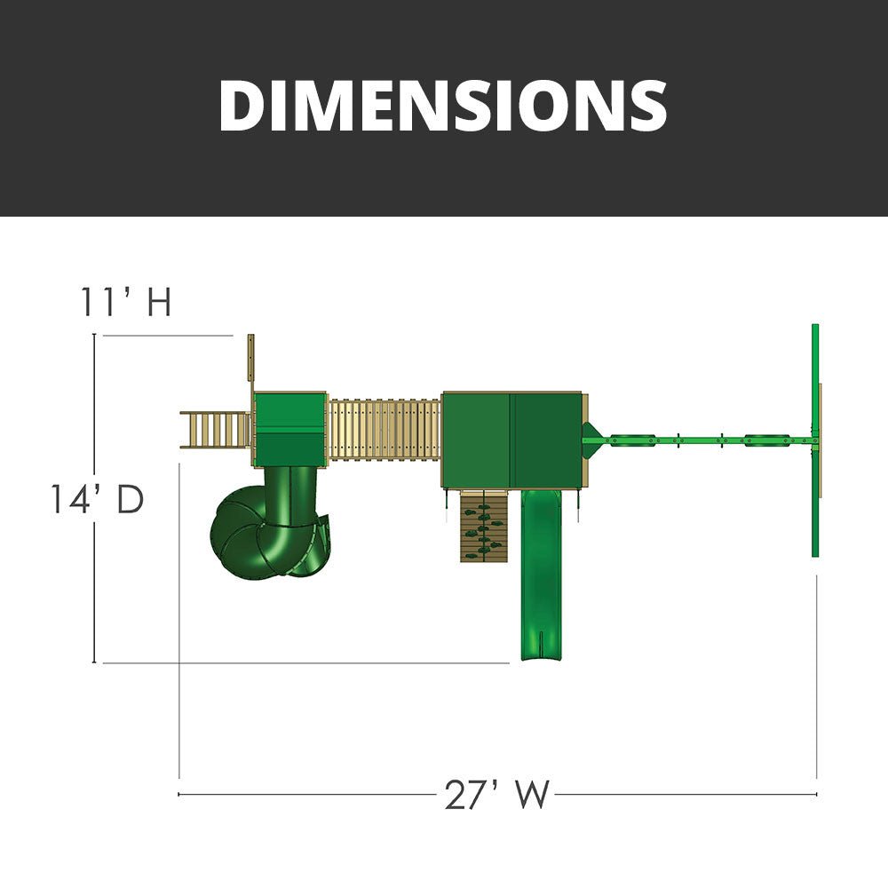 The excitement never ends with this Gorilla Playsets Savannah Swing Set. Children will love zipping down the Extreme Tube II and Alpine Wave slides, as well as scaling back up via the rope ladder and rock climbing wall. A tower connected to a clatter bridge promotes imaginative play, while the belt swings and trapeze swing offer aerial fun. The swing set’s cedar construction features solid 4” x 4” support beams and a 4” x 6” swing beam finished in a beautiful amber stain.