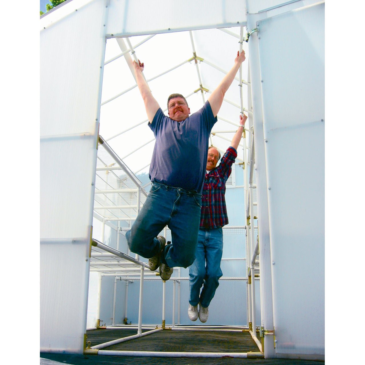 With plenty of growing area and included wire rack shelving, the Oasis greenhouse will become a source of year round gardening pleasure – and you’ll love the 8 foot height! With the 5mm insulated Solexx panels, you will keep heating costs low, and extend your growing season from early spring to late fall.